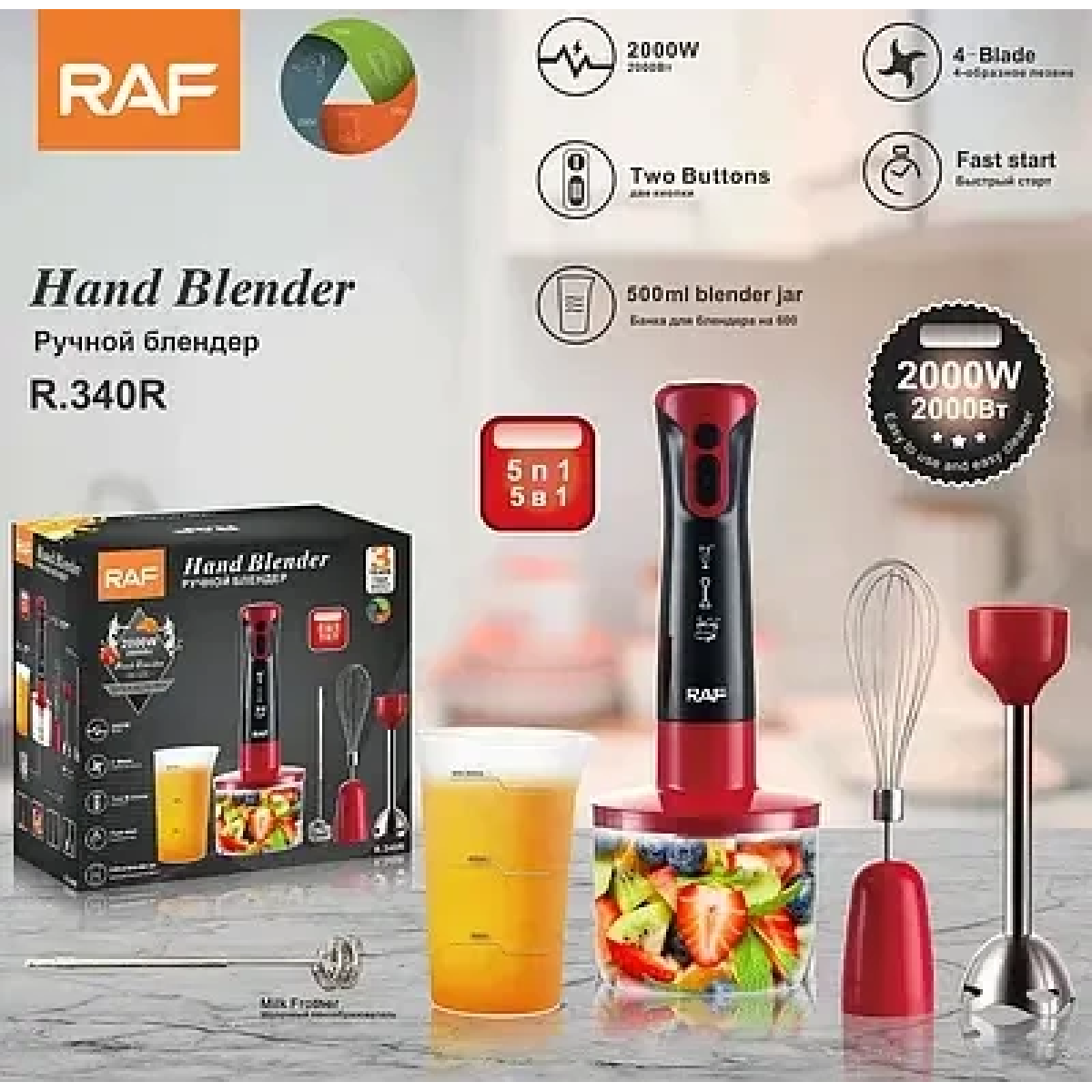 Заглибний блендер потужністю 2000 Вт 5в1 RAF R340.