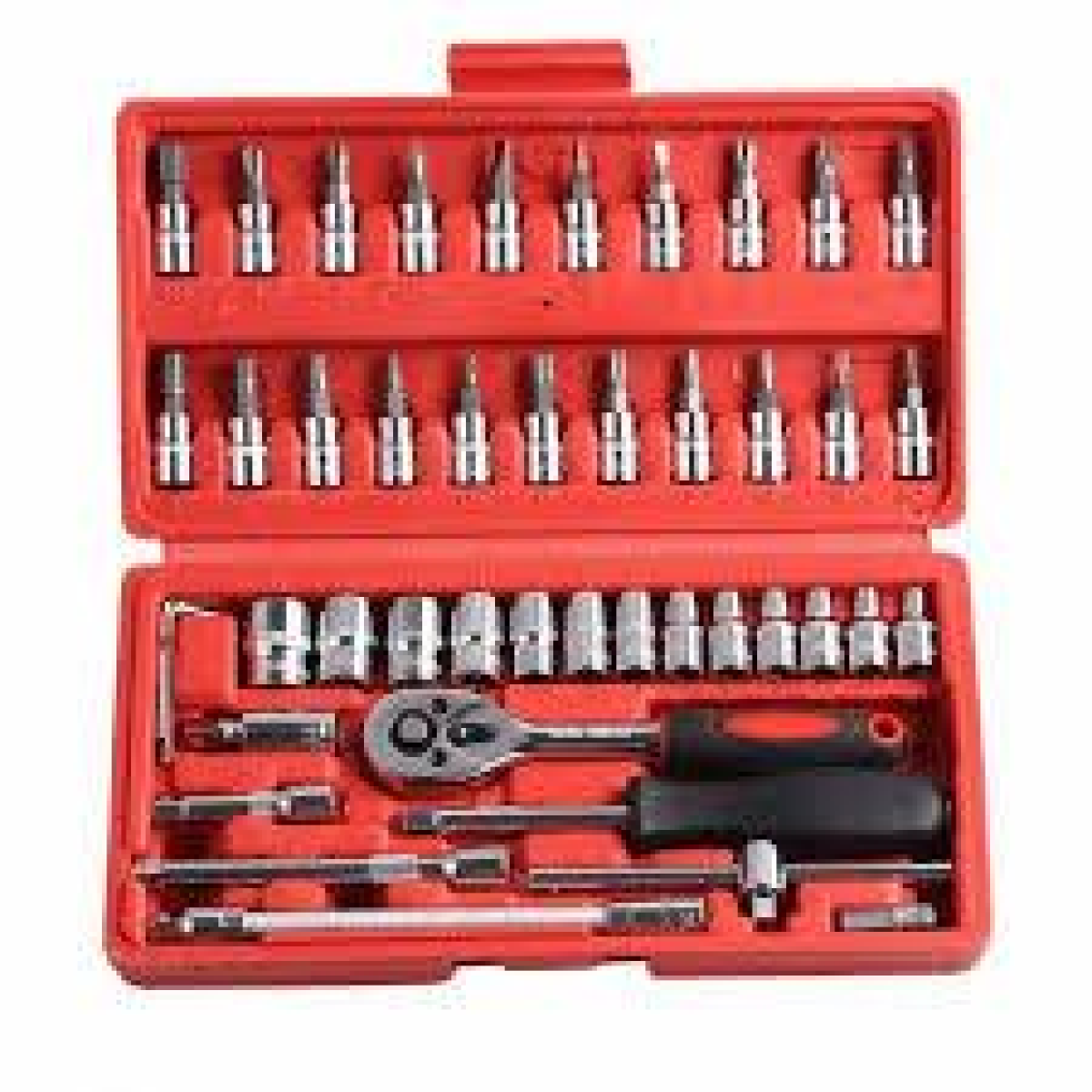 Набір інструментів 46 предметів Інструмент містить Комбінація Пакет Жесткий чехол Розміри 9,4*1,7*5 дюйма Джерело живлення Рука Розмірність 23,5*13*4,5 см Матеріал Вуглецева сталь Місце походження Китай Чжецзян Гарантія 1 рік Індивідуальна підтримка Odm Фірмове найменування ODM Номер моделі 46 шт. Застосування Автомобіль Тип комплекту Ключ с трещоткой