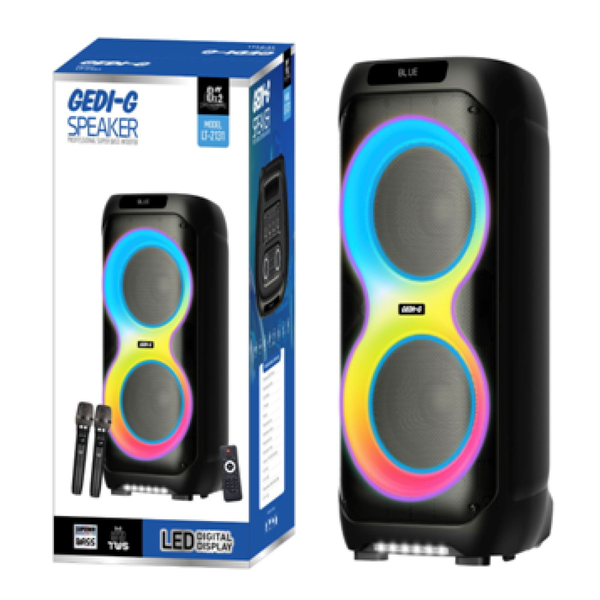 Акумуляторна блютуз-колонка 2*8“ 2 мікрофони LT-2131